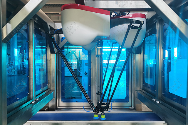 裝箱機(jī)采用并聯(lián)機(jī)器人,具有三維空間 XYZ 平動和繞 Z 軸旋轉(zhuǎn)的作業(yè)特點(diǎn),擁有速度快、可靠性高、易用性強(qiáng)、維護(hù)成本低等優(yōu)勢。