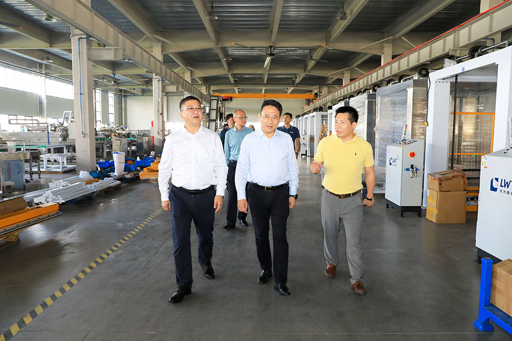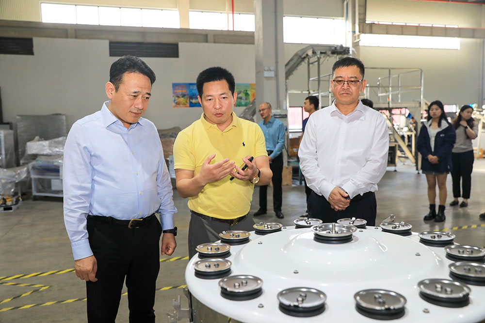 在尼為智能董事長張萬寶的帶領(lǐng)下,上海市金山區(qū)副區(qū)長、黨組成員潘恩華一行參觀了工廠,查看尼為智能自主研發(fā)和生產(chǎn)的自動(dòng)化生產(chǎn)線,并與尼為智能董事長張萬寶深入交流,了解公司經(jīng)營、產(chǎn)品應(yīng)用、存在的困難等情況,認(rèn)真聽取公司訴求和建議。